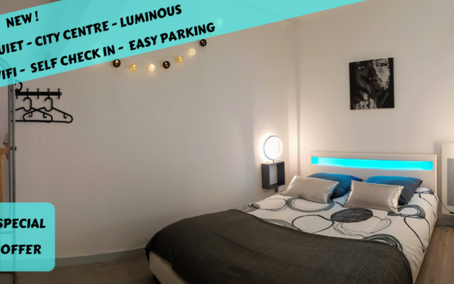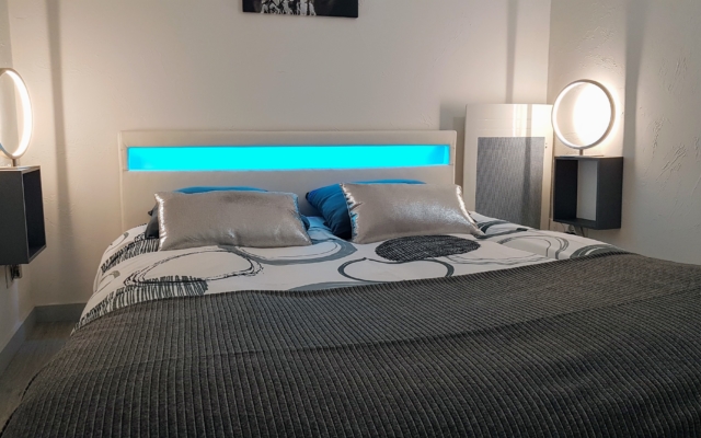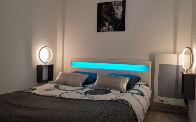 Vous disposez d’une belle chambre confortable équipée d’un lit de 140 cm avec bandeau LED intégré.