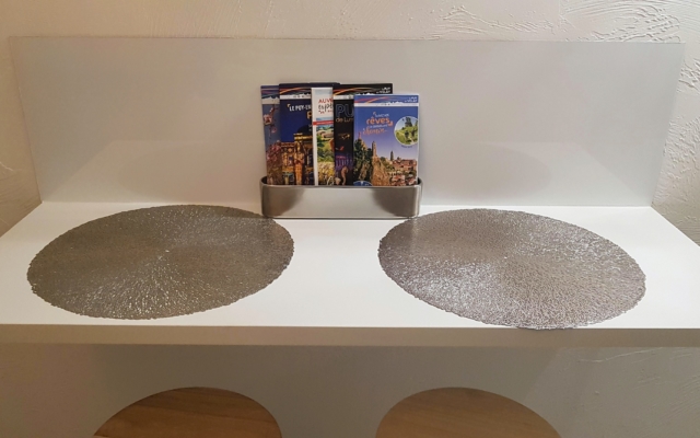 Bref vous y trouvez tout l’équipement nécessaire de même que les produits de première nécessité : sel, poivre, huile, vinaigre, café, infusions…