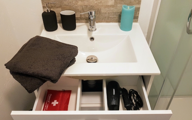 En plus tout l’équipement nécessaire est à votre disposition: serviettes de toilette, savon, gel douche, shampoing et sèche cheveux. Et surtout quoi de mieux qu’une serviette-éponge bien chaude après la douche grâce au sèche-serviettes ?